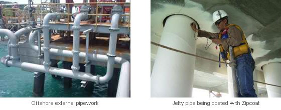 Zipcoat is a polyester system and ZIP E, an epoxy system. Both coating are applied in one coat, saving time and money over the standard multicoat epoxy systems. The product is being used across the world protecting bridges, piling and jetties to name a few.